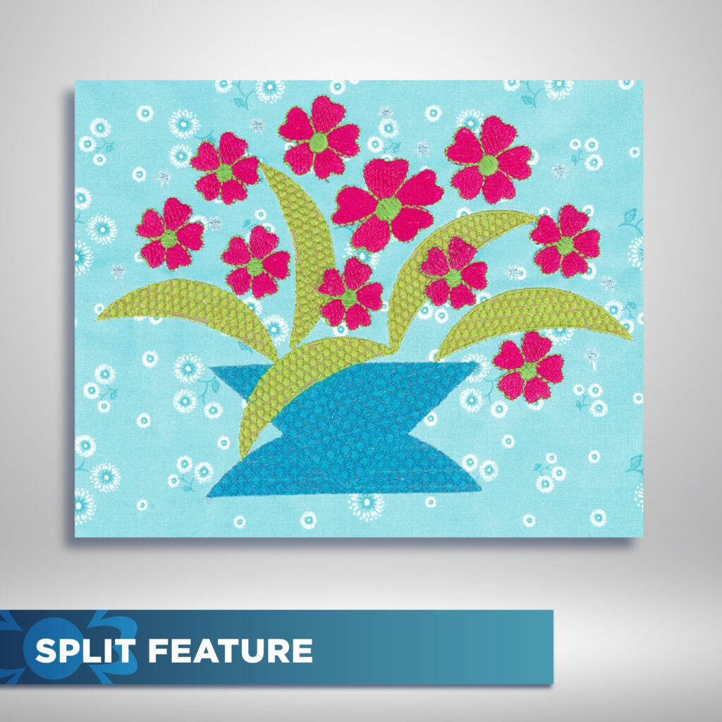 Take complete creative control with the advanced embroidery editing functions built into the machine. On the full-color touchscreen, you can resize, combine, duplicate, flip, arc, group, and drag & drop designs with ease, giving you endless flexibility to create custom layouts. The zoom and trace features enable you to preview your placement with pinpoint accuracy, while user color choice allows you to experiment with different thread palettes before stitching. For added precision, flexible stitch traveling by units of 1, 10, or 100 makes it simple to move through your design, whether you’re fine-tuning or making quick adjustments. And if a thread breaks mid-design, the machine’s auto return function ensures you can pick up right where you left off without missing a single detail. These intuitive editing tools make it easy to achieve professional-quality embroidery that reflects your unique vision.