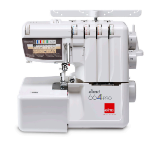Unveil a world of serging with the Elna eXtend 664PRO V2! This machine allows you to skillfully cut, hem, and sew with just one step in minimum time. The 664PRO is loaded with features such as 12 stitch programs, a program reference panel on display, 4/3/2 threads, color-coded thread guides, a built-in 2-thread converter, an instant rolled hem device, adjustable foot pressure, a tilting needle clamp, and so much more! Does skirt hemming or sewing on stretch material seem complicated to you? Not with the Elna eXtend 664PRO! This machine makes serging simple and operation easier than ever thought!