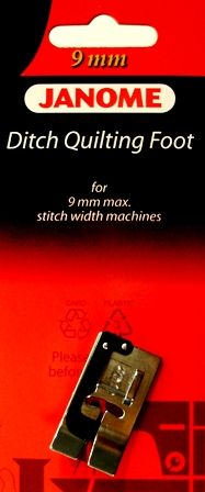 The Janome Ditch Quilting Foot 9mm allows you to sew "in the ditch" of a seam with this snap-on foot. The Janome Ditch Quilting Foot 9mm has an extended guide helps you stay in the seam while the machine stitches. The Janome Ditch Quilting Foot 9mm is perfect for quilt tops and garment construction on waistbands, etc.