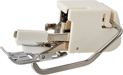 Even Feed Foot also well known as a Walking Foot has its own set of feed dogs that work in conjunction with the machines feeding system to improve the flow of the fabric. This is particularly important when sewing several layers of fabric, such as in quilting. The Even Feed Foot “pulls” the top layer or layers of fabric through at the same speed as the machine’s feed dogs are pulling the bottom layers or layers of fabric. The walking foot is wonderful for fabrics that stretch or slip easily, such as velvet and corduroy. You won't believe how helpful this foot is for matching plaids and other difficult patterns perfectly.
